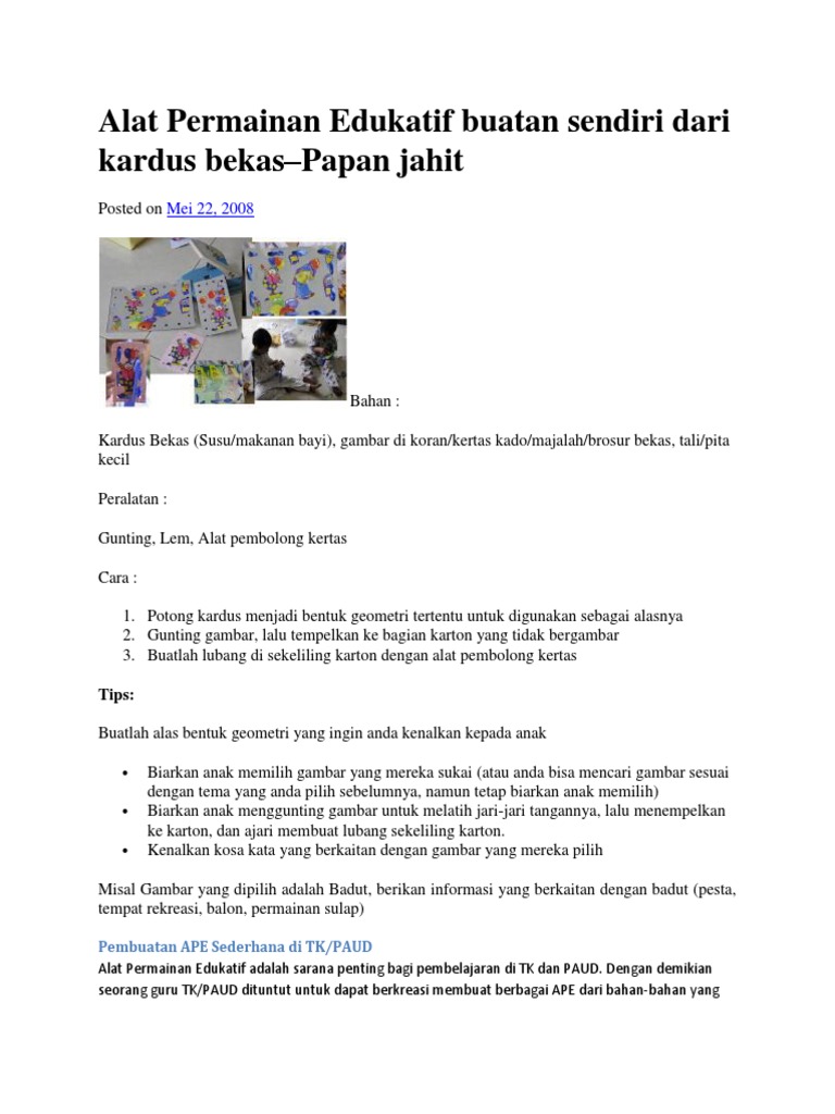 Alat Permainan Edukatif Ape Kreasi Bunda Paud By Cevlog