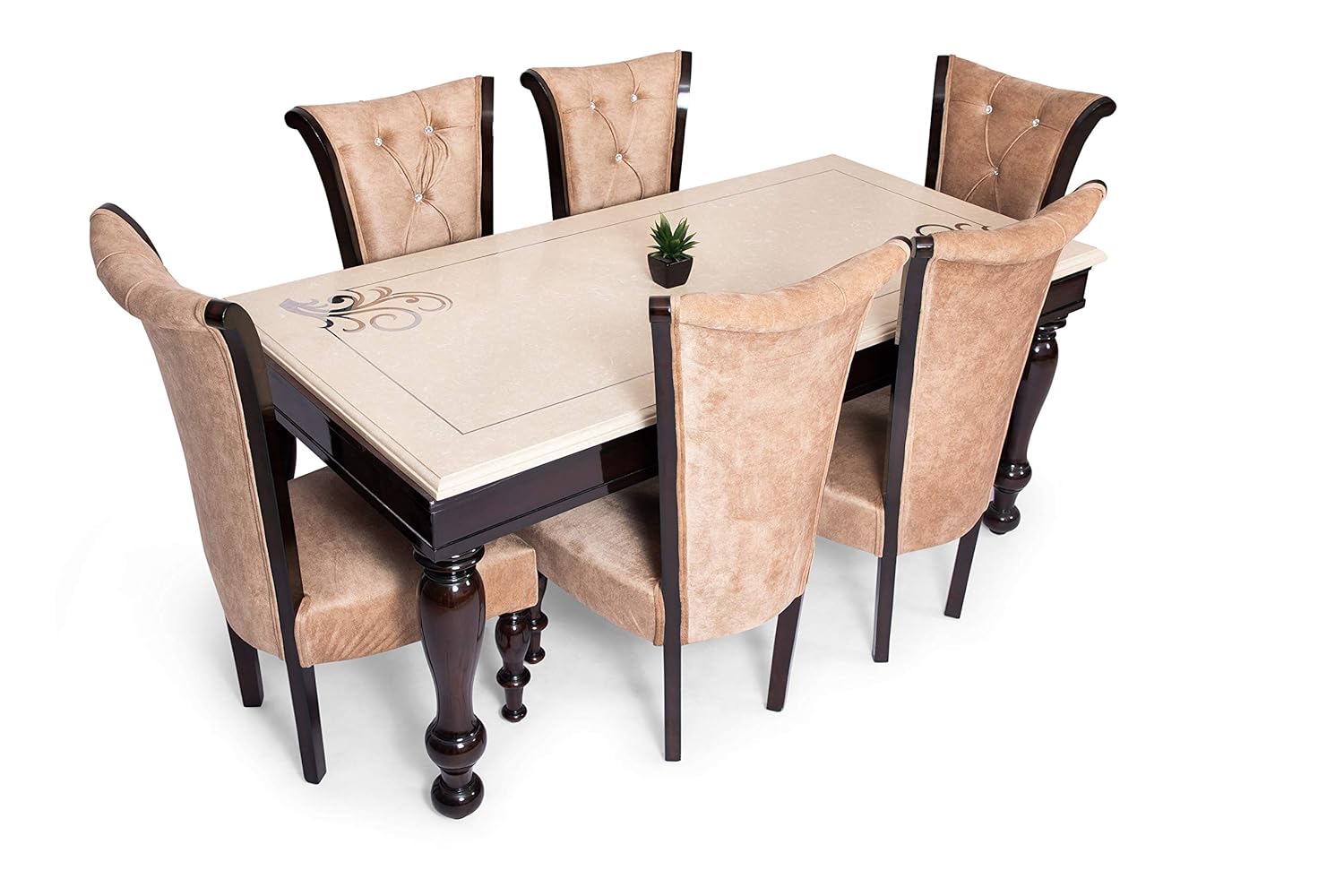 Ma Modern Amenities Wooden Dining Table 6 Seater With Marble Top Amazon In Home Kitchen