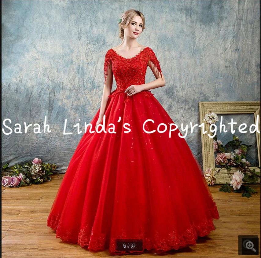 Robe De Soiree Ball Gown Red Princess Cap Sleeve Wedding Dress Lace Appliques Beading Modest Women Muslim Bride Dressm Wedding Gowns On Sale Couture Ball Gown Wedding Dresses Full Ball Gown Wedding